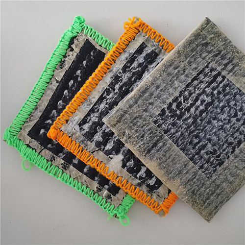 膨潤防水毯是一種專門用于人工湖泊水景、垃圾填埋場、地下車庫、樓頂花園、水池、油庫及化學(xué)品堆場等防滲漏的土工合成材料,它是由高膨脹性的鈉基膨潤土填充在特制的復(fù)合土工布和無紡布之間,用針刺法制成的膨潤土防滲墊可形成許多小的纖維空間,是膨潤土顆粒不能像一個方向流動,遇水時在墊內(nèi)形成均勻高密度的膠狀防水層,有效的防止水的滲漏。膨潤土防水毯按生產(chǎn)工藝可分為:針刺法鈉基膨潤土防水毯、針刺覆膜法鈉基膨潤土防水毯以及膠粘法鈉基膨潤土防水毯。 針刺覆膜法鈉基膨潤土防水毯,是在針刺鈉基膨潤土防水毯的非織造土工布的外表面上復(fù)合一層高密度聚乙烯土工膜。