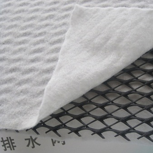 復(fù)合排水網(wǎng)是一種新型的排水土工材料。以高密度聚乙烯(HDPE)為原料,經(jīng)特殊的擠出成型工藝加工而成,具有三層特殊結(jié)構(gòu)。中間筋條剛性大,縱向排列,形成排水通道,上下交叉排列的筋條形成支撐防止土工布嵌入排水通道,即使在很高的荷載下也能保持很高的排水性能。雙面粘接滲水土工布復(fù)合使用,具有“反濾--排水--透氣--保護(hù)”綜合性能,是目前最理想的排水材料。
