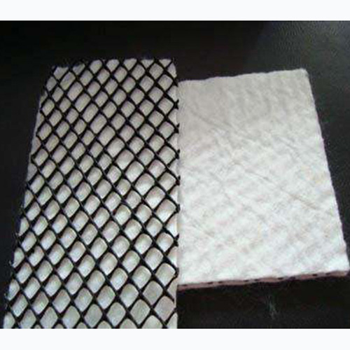 復合排水網是一種新型的排水土工材料。以高密度聚乙烯(HDPE)為原料,經特殊的擠出成型工藝加工而成,具有三層特殊結構。中間筋條剛性大,縱向排列,形成排水通道,上下交叉排列的筋條形成支撐防止土工布嵌入排水通道,即使在很高的荷載下也能保持很高的排水性能。雙面粘接滲水土工布復合使用,具有“反濾--排水--透氣--保護”綜合性能,是目前最理想的排水材料。